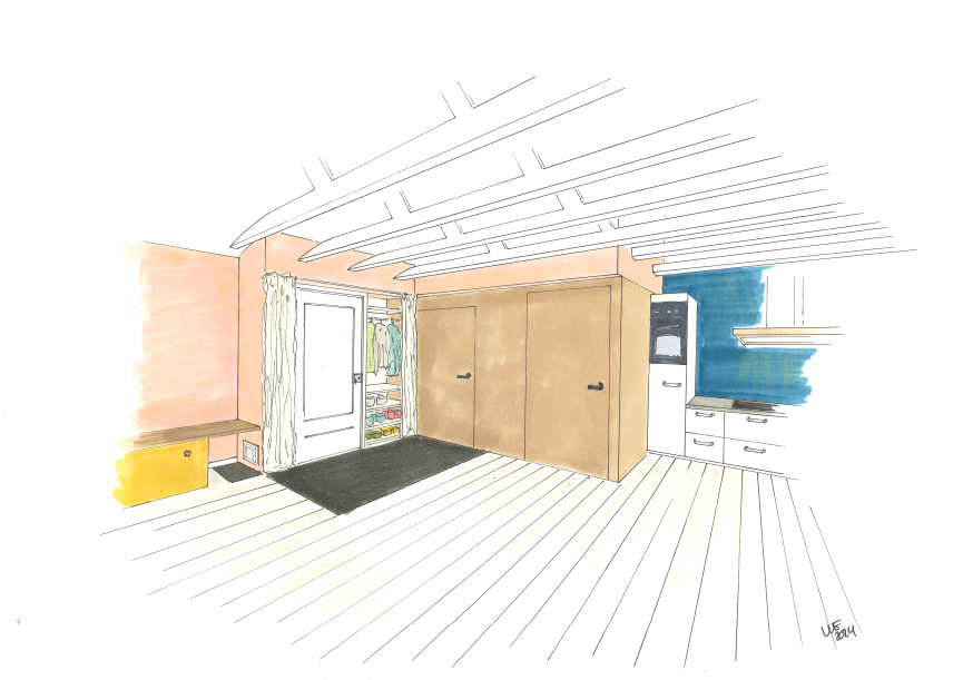 Deze woonboot ligt op een prachtige plek aan de rand van de Eem. Midden in de natuur en toch heel centraal. Een unieke locatie! De oorspronkelijke inrichting was echter verre van uniek: saai, rommelig, donker en enigszins ouderwets. Dit paste niet bij het kleurrijke gezin dat hier woont.