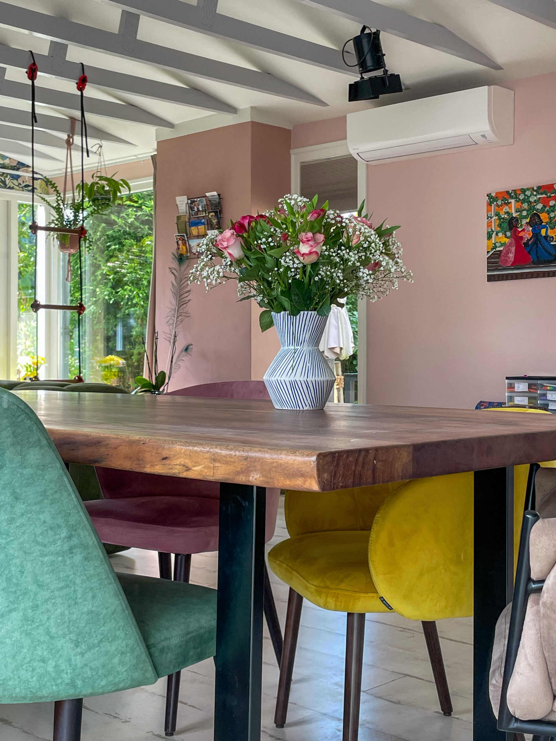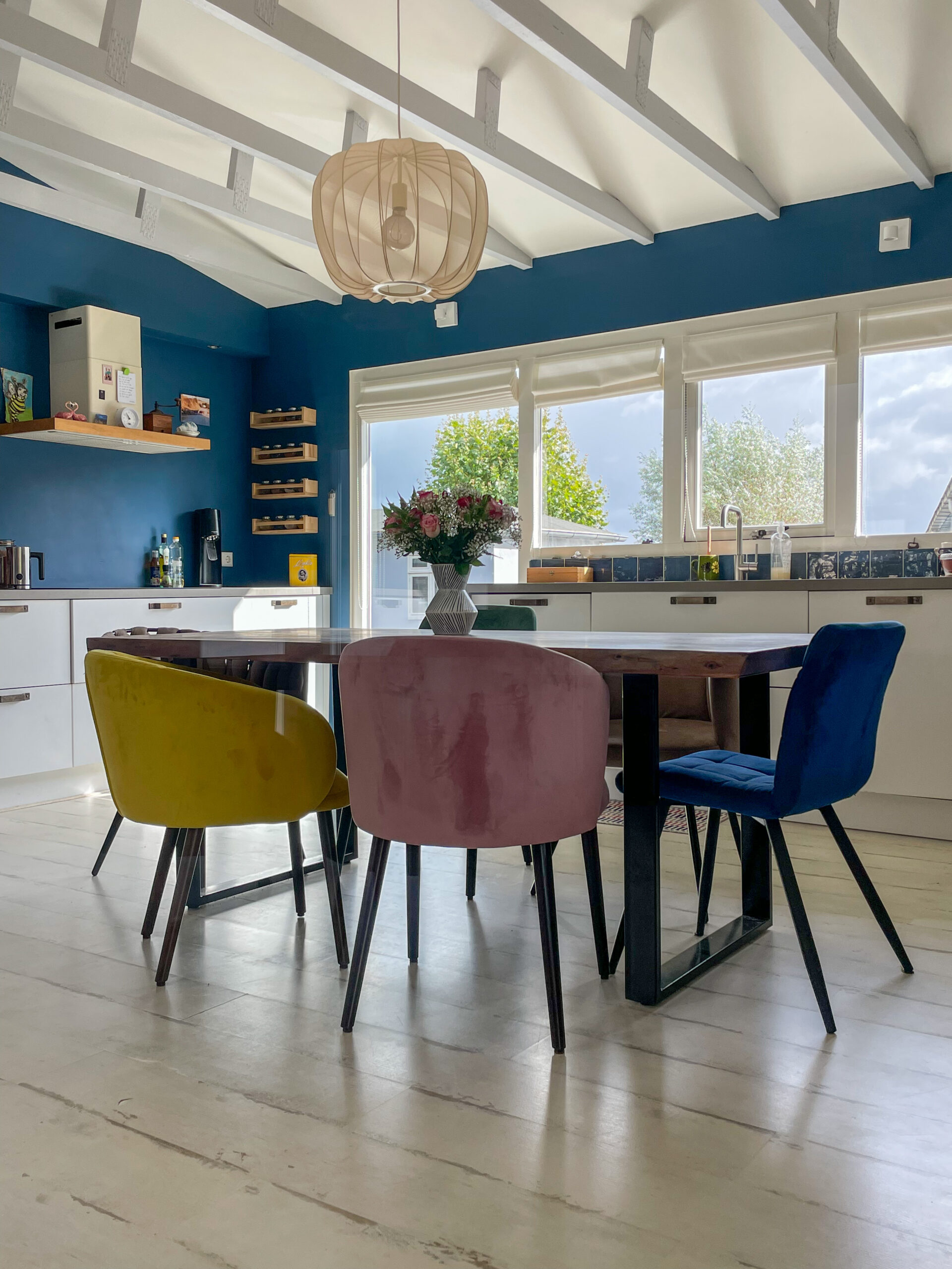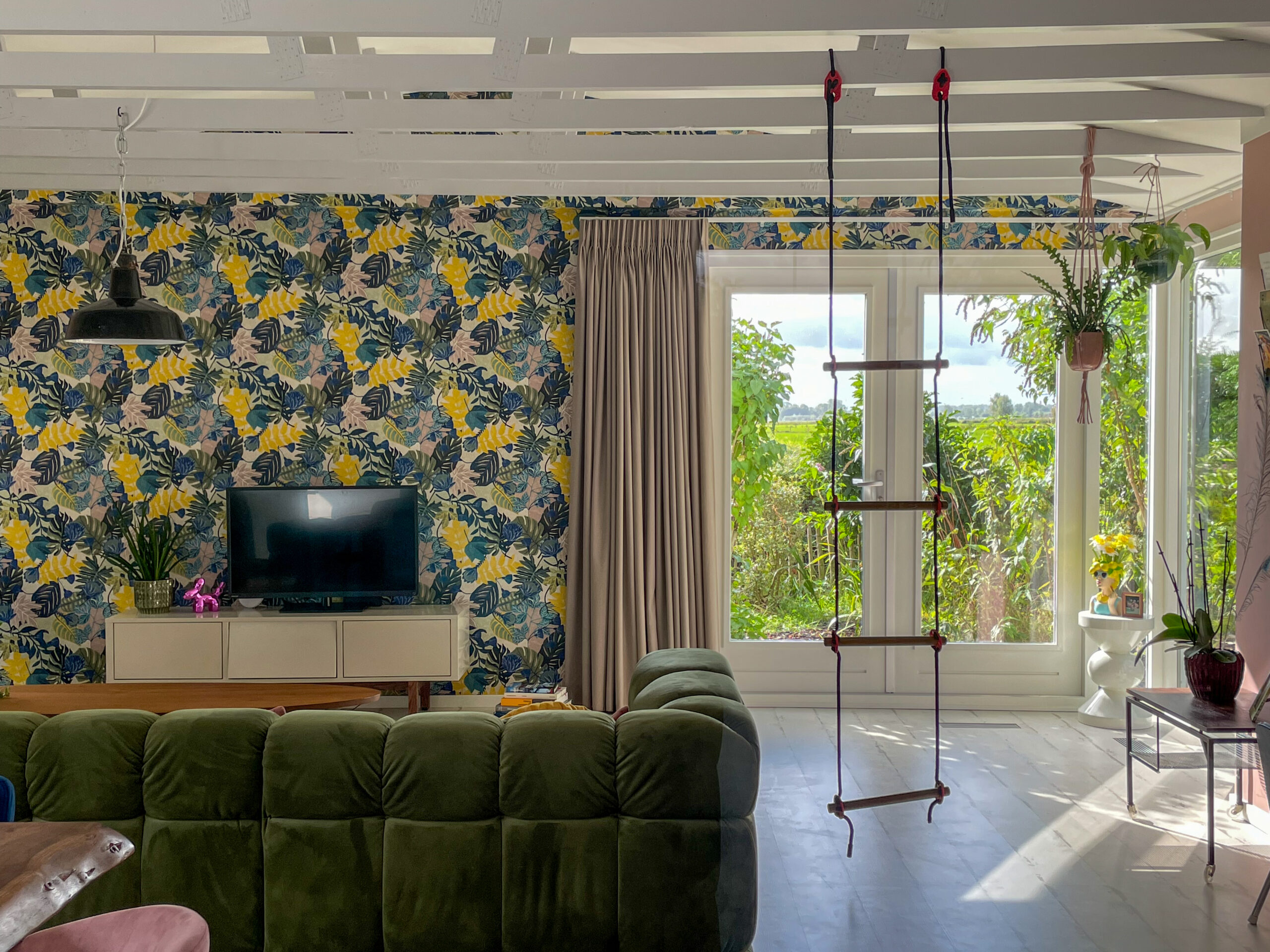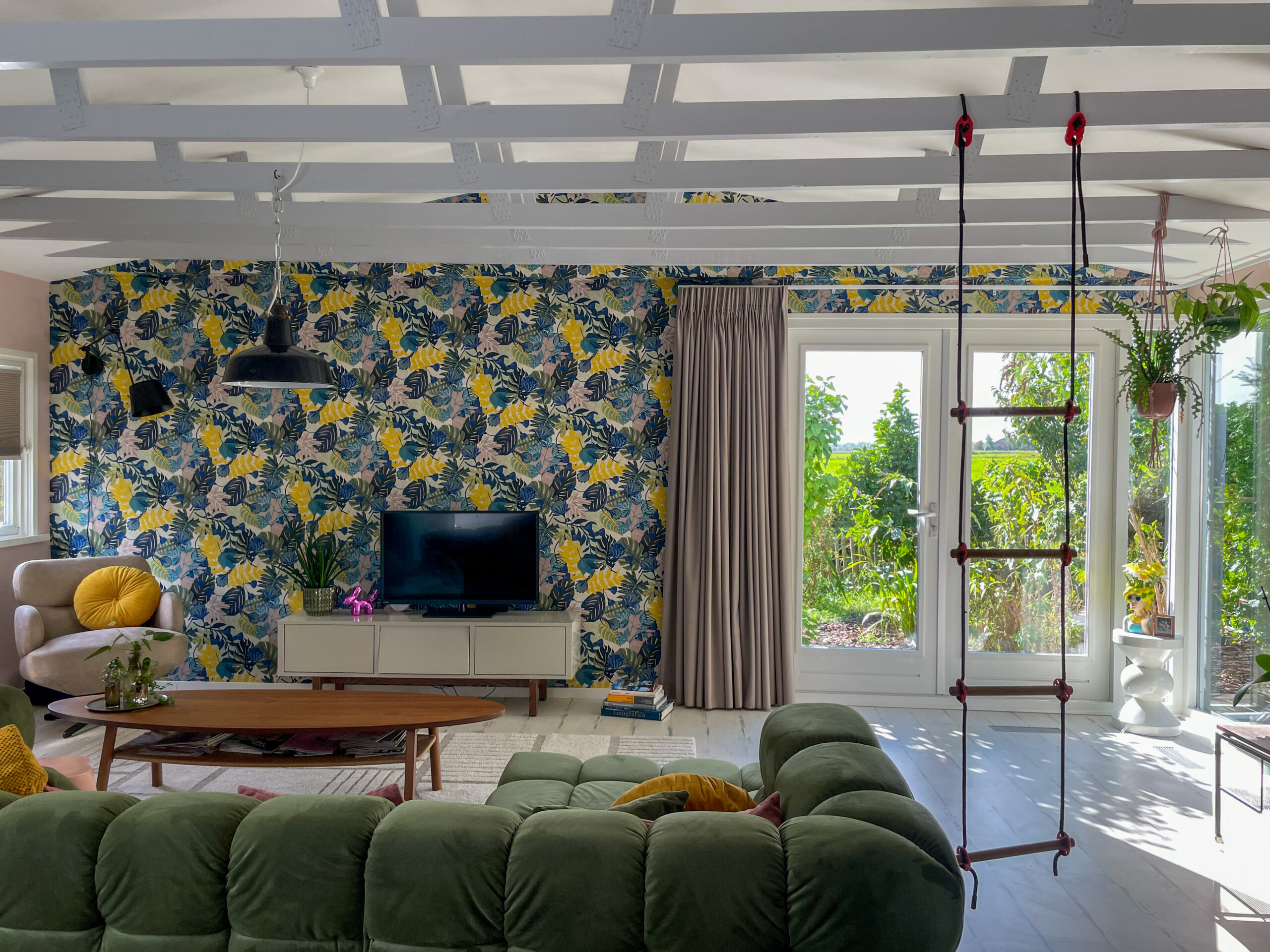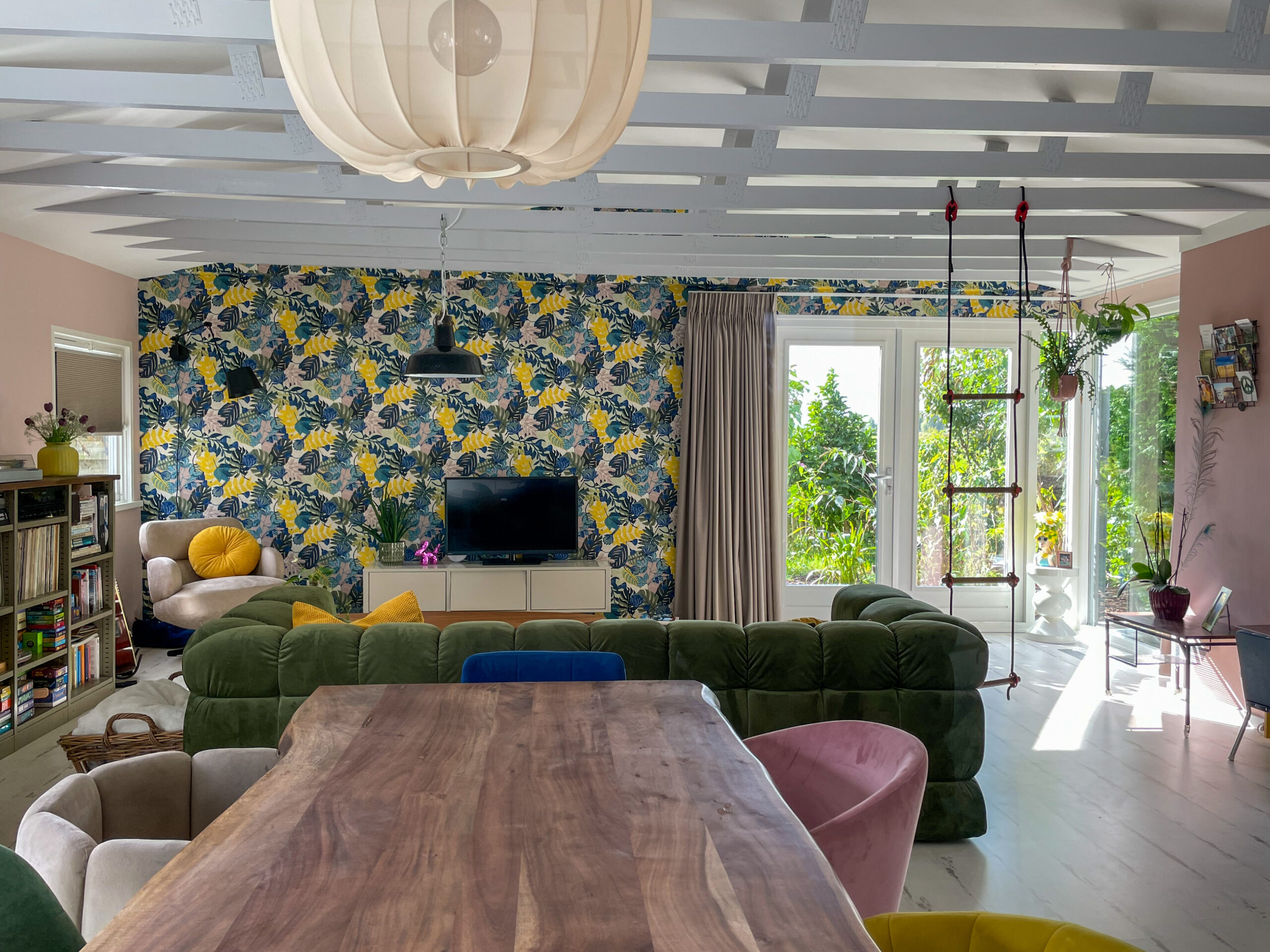 Het eindresultaat sluit naadloos aan bij de stijl en levenswijze van de bewoners, waarbij kleur en natuur perfect samenkomen.