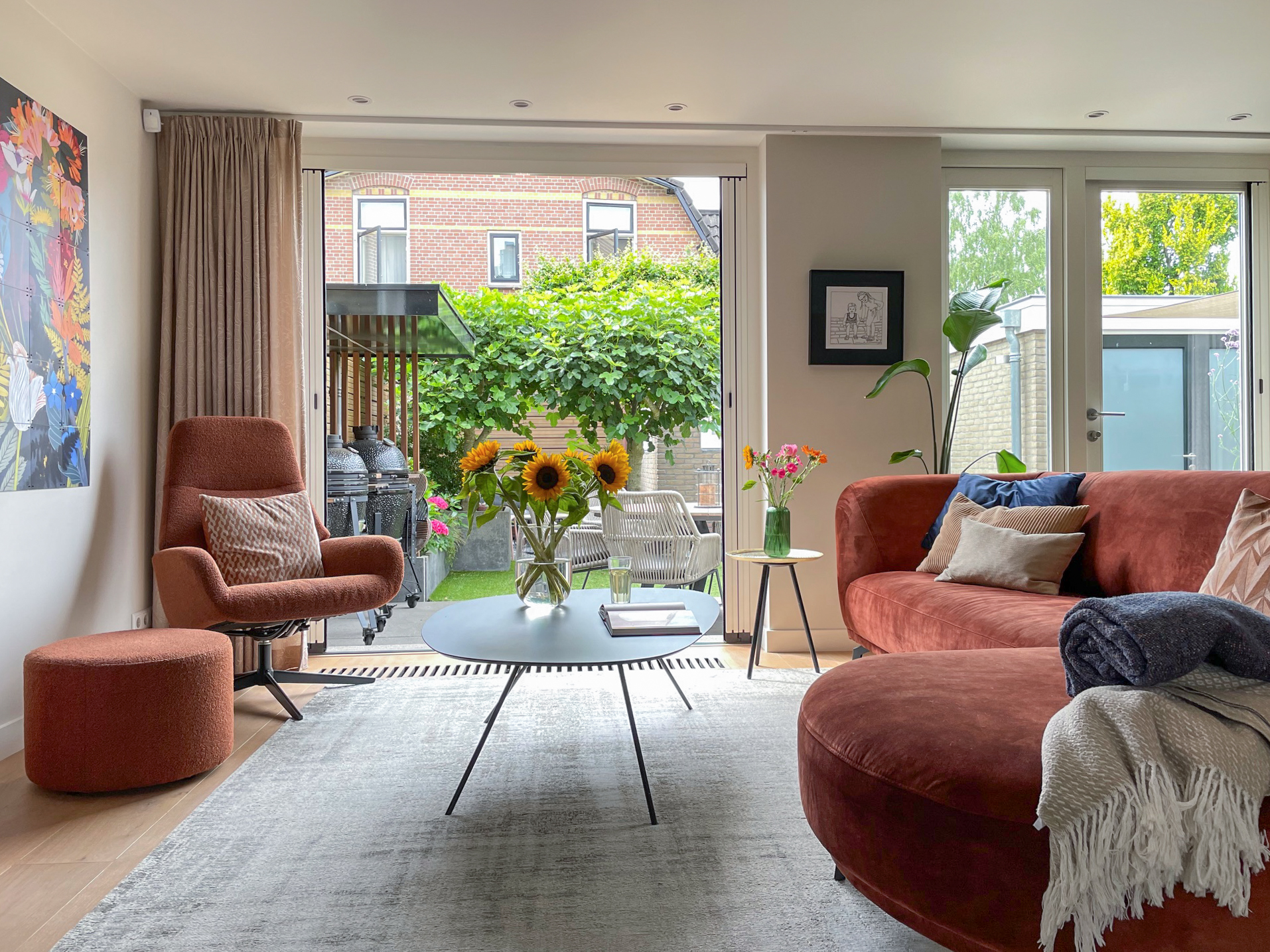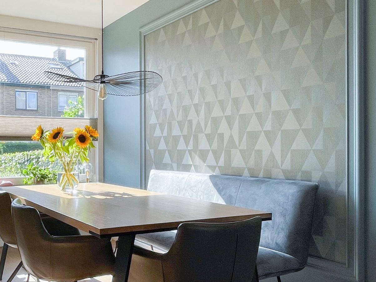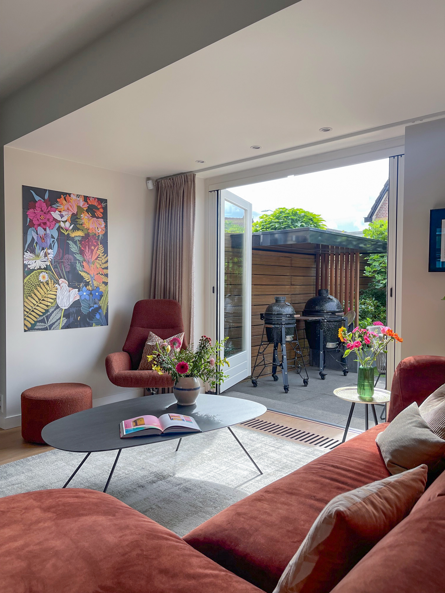 De eethoek is nu veel meer dan alleen een eethoek. Door een comfortabele bank toe te voegen, hebben we de ruimte vergroot. Hier drinken we koffie in het zonnetje, borrelen met vrienden, en spelen vaker spelletjes met de kinderen.